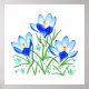 Uma impressão com três vibrantes crocos azuis retratados com delicadas folhas verdes. Suas pétalas suaves e centros brilhantes capturam uma essência fresca de primavera. Obra original de W.B.
