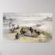 Impressão da Escola Inglesa de um campo ocupado por Homo habilis (lápis no papel) localizado em uma Coleção Privada. A Impressão de um acampamento ocupado por Homo habilis (lápis no papel) foi criada por volta do 20.
