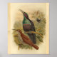 Ilustração vintage de 1879 do Pássaro Rifle da Nova Guiné. Machos e fêmeas com penas azuis, roxas e castanhas sentados em um galho de árvores.