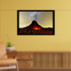 Um vulcão ativo lança lava vermelha quente e fumaça.