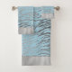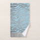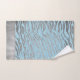 Uma marca de zebra sombreada, com brilho de prata, em um fundo de turquesa, em contraste com uma fivela prateada adornada com um colar prateado de pérola para um brilho extra. Trendy zebra decor chic.