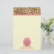 Artigos de papelaria que caracterizam uma ilustração de um impressão do girafa e de uma coruja cor-de-rosa no fundo. Personalize com seu nome sob a coruja. A parte superior é impressão do girafa com guarnição cor-de-rosa.