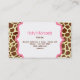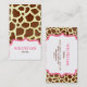 Um cartão de visita na moda que caracteriza um fundo do impressão do girafa na parte dianteira e na parte traseira. Quadros cor-de-rosa. Personalize a parte dianteira com seus nome e título dentro do quadro no fundo. Personlize a parte traseira com sua informação dentro do quadro no centro. Procure outros artigos do impressão do girafa no Paperie de Jill.