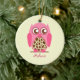 Um ornamento que caracterizam uma ilustração de um impressão do girafa e a coruja cor-de-rosa personalizam com seu nome. Artigos de harmonização Look for em Jill'sPaperie.