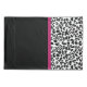 Um travesseiro preto e branco de impressão-leopardo com uma fita rosa-escura vivaz presa num arco giro. Personalize este design de padrões de animais na moda e quadrinhos adicionando o nome da sua adolescente. Imagem impressa em formato plano, não faixa real.