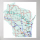 Mapa Interestadual de Wisconsin com interestados, autoestradas dos EUA, estradas estaduais e nomes de cidades.