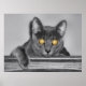 Uma fotografia de hetero na face de um cinza com olhos brilhantes ouros. Editada com coloração seletiva para enfatizar os olhos mesmerizadores.