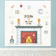 This ultra-trendy flat vector illustration blends 2026 digital culture with nostalgic 2016 internet vibes. A cozy fireplace scene meets modern tech symbols like social icons, global sharing cues, and abstract shapes, creating a warm yet futuristic aesthetic. Playful typography and bold contrast colors deliver strong visual impact, while subtle fashion-inspired accents add depth. Designed for creators, trend lovers, and digital natives who appreciate cultural crossover and modern nostalgia.