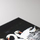 Três cisnes brancas natações num lago e criam lindas reflexões na água.