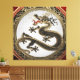 Impressão Em Tela [901] Dragão Oriental Dourado e negro