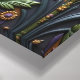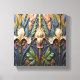 Relief of iris flowers with gold, pink, green and purple colors, symmetrical composition, ornate details, dark gray background, art nouveau style, decorative, intricate design.