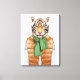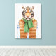 Esta design apresenta um tigre de inverno pronto para vestir seu colete no chão, cachecol verde e suéter de Natal.