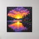 Eine friedliche Blockhütte steht am stillen Seeufer, umgeben von majestätischen Tannen. Die untergehende Sonne taucht den Himmel in warme Farben, während sich das Licht im Wasser spiegelt. Ein Ort der Stille, der Geborgenheit und des Rückzugs aus der Welt – fast wie aus einem Märchen.