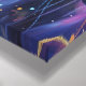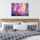 The image showcases a vivid array of abstract flowers set against a background of swirling colors. Bright yellows and purples mix with hints of blue, creating a sense of dynamic motion and energy.
