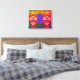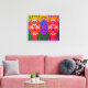 The image features a symmetrical tribal pattern with vibrant colors. Geometric shapes in red, green, blue, and yellow create a striking visual impact.