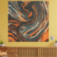 Ce design est une invitation à la contemplation d'un mouvement éternel. Les teintes profondes d'orange terreuse et de bleus gris, rehaussées de touches de blanc crème et de noir charbon, s'entrelacent dans une danse fluide et organique. On y perçoit l'écho des forces naturelles : la chaleur des volcans en éruption se mêlant à la fraîcheur des eaux profondes, ou encore le balai des nuages d'orage sur un ciel crépusculaire. Chaque courbe, chaque fusion de couleur, révèle une harmonie intrinsèque, un écho de la beauté complexe et toujours changeante du monde qui nous entoure. C'est une œuvre qui murmure les histoires silencieuses de la terre et de l'horizon, capturant l'essence même du mouvement et de la transformation.