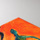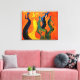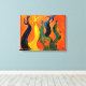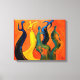 Um abstrato enérgico e intenso impressão de cinco figuras dançarinas em comemoração. Esta canvas adorável e vívida em laranja, azul e amarelo é um impressão de uma pintura acrílica original criada pelo designer.