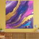 Impressão Em Tela Abstrato-Flow Art-Blue Pink Roxo e Dourado-