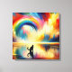 Impressão Em Tela Abstrato Rainbow & Cat Refletindo Água Superficial