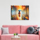 Possui folhas abstrato de outono que caem em arte cheias de cores brilhantes. Há uma mulher caminhando sozinha na chuva, e a luz brilhando na rua molhada faz com que ela pareça brilhante e bela. Embora a imagem possa parecer um pouco triste, também se sente mágica e excitante. Prendam-no na parede e deixem a vossa imaginação levar-vos a uma aventura.