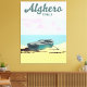 Alghero Itália poster de viagens, barco a remo, com belos retrorreflectores ou vintage.