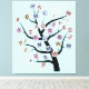 Alphabet ABC tree custom canvas, apresentando uma árvore com letras de alfabeto sobre ela em tons azuis roxos sobre fundo azul claro. Um excelente bonito e moderno para crianças, decoração de quarto.