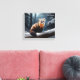 Um marten americano vivo (americana de Martes) senta-se sobre uma árvore caída coberta de neve numa floresta. Personalize adicionando seu próprio texto. O marten norte-americano é frequentemente chamado de marten de pínus e encontra-se em todo o Canadá, no Alasca e em partes dos Estados Unidos nortes.