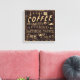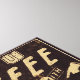© Pela Studio / Maçã selvagem. Um sinal dourado e marrom dintage com uma citação sobre café. A placa diz "Uma xícara de café compartilhada com amigos é a felicidade experimentada e o tempo bem passado."