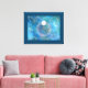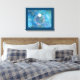 Um anel de filigres prateado estilizado, ornamentado, coberto de pérolas brancas-nubladas e colocado com uma gema branca redonda de solteiro, com uma estrela a brilhar das suas profundidades, colocado contra um pano de fundo de fractais azuis e aquosos.