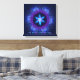 Estrelas fractais, cor-de-rosa e azul, entrelaçadas de David sobre fundo escuro com texto hebraico lendo "Ani L'Dodi V'Dodi Li" (Eu sou meu amado e meu amado é meu).