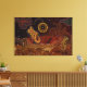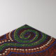 Sobre o "DESERT HEAT", um design original de Skye Ryan-Evans (2011) © Esta imagem de terra de uma cena de caça é colocada em um pano de fundo ao redor de Uluru ou Ayer's Rock na Austrália Central. Trata-se de um mapa australiano, ao estilo aborígene, de parte do deserto também conhecido na Austrália, como o Outback. Os vários pontos coloridos representam elementos da natureza como montanhas, cursos d'água, canteiros secos, fontes de comida como Kangaroo e Goanna, Gecko e Cobra etc. Muitos dos círculos representam pequenas plantas do deserto que florescem na estação chuvosa e as formas florais no céu estão espiralando estrelas queimando nos céus e lançando luz para animais noturnos que vagueiam o deserto no legal da noite. A peça central representa o sol implacável do deserto e o calor que ele gera para trazer vida e morte ao ciclo do deserto. Algumas das formas animais no céu retratam os espíritos animais aos quais o caçador aborígene dá obrigados quando ele toma um animal por sua subsistência. A Cobra está relacionada à Criação nas mitologias do Sonho Australiano. Nessa representação terrestre, a Cobra está rastejando por gramíneas secas do deserto e a segunda vista no céu é representativa do espírito Cobra. 25% dos royalties gerados por esta Impressão de Arte orgânica são doados para o excelente Habitat for Humanity na América do Norte.