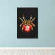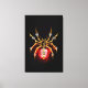 Aranha mecânica, com pá-pá de ouro, engrenagens de latão e uma lâmpada de vidro vermelha sobre fundo preto. Estilo Steampunk.