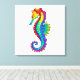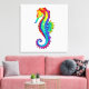 Articulação artificial, brilhante, arco-íris, cavalo de mar poligonal sobre fundo branco. Tatuagem brilhante.