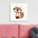 Belo design de canvas de apresenta uma ilustração bonita de uma fox marrom doce vestindo um par de óculos de leitura e uma gravata de arco rosa, e pode ser personalizada com um nome ou uma mensagem personalizada e ser usada como o toque perfeito de acabamento para um berçário bebê, quarto de criança, sala de brincadeira de crianças, sala de aula, dormitório, etc.
