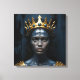A portrait of a dark-skinned woman wearing a gold crown, with dark paint dripping down her face.