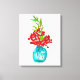 Berries vermelhos em jarro de turquesa ainda pintam a arte original de Sacha Grossel. Estilo de aquarela colorida e moderna. Tema vermelho e verde.