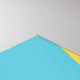 Um design geométrico abstrato colorido, com cores brilhantes e arrojadas, de cor rosa quente, turquesa e amarelo.