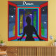 Colorida Arte Digital. Mulher olhando pela janela para o universo.