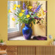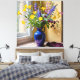 Arte Azul Roxo Roxo Traga paz a qualquer espaço com esta estilizada aquarela, a vida estática, apresentando um vaso de flores em azuis inquietos, amarelos e roxas. Perfeito para decoração de parede.