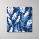 Arte emoldurada com flores azuis e brancas sobre fundo escuro.