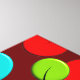 Whimsical and Quirky Tree Art, "The Magical Forrest", o artista usa cores sólidas brilhantes em vermelho, amarelo. azul e verde limão para criar esta peça única.