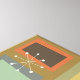 Este padrão inspirado na década de 50 retrógrado tem formas retangulares inclinadas em cores de safra ou chartreuse, laranja e marrom.