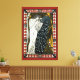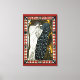 Ilustração vintage de um design de cartaz publicitário Art Nouveau de The Kiss; Bradley his Book, 1896 por William Bradley. O Beijo é um anúncio de amor e romance que apresenta uma bela senhora grega vestida com uma toga longa e fluída beijando um pavão. Folhas, plantas e flores estão ao fundo.