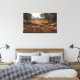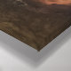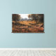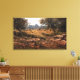 Cena pintada mostrando árvores espalhadas em um dia nevado.
