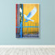 Uma pomba branca radiante estende as asas contra um fundo ousado amarelo e azul, simbolizando paz, esperança e novos começos. O contraste marcante das cores realça a pureza da pomba, criando uma poderosa mensagem visual de harmonia que se eleva acima do ambiente cotidiano.
