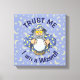Um velho feiticeiro com capa azul olhando para a bola mágica de cristal.