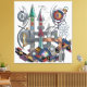 This digital artwork, titled "Astral Pilot," is a complex geometric composition heavily influenced by the constructivist visions of El Lissitzky and his "Prouns." It features a vertical assembly of architectural forms, combining metallic textures, marble surfaces, and vibrant glass elements. Sharp spires and interlocking beams create a sense of structural depth, while floating sickles and circular discs add dynamic movement. The palette balances industrial greys with bold accents of red, blue, and gold. Crystalline clusters and glowing gems are integrated into the towers, suggesting a fusion of technology and mysticism. Runic inscriptions and cryptic symbols are etched onto the surfaces, enhancing the "astral" theme. This piece serves as a modern homage to early 20th-century avant-garde design, perfect for modern interiors, studios, and fans of geometric abstraction.