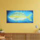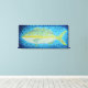 Este acrílico abstrato sobre trabalho de arte de madeira feito em estilo Impasto é uma obra original do artista Edward Guthy entitulada Yellowfin Tuna. Cores vibrantes de azul, branco e amarelo retrata um atum albacora nadando no fundo do mar azul.