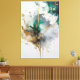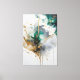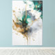 Esta obra abstrata combina pinceladas fluidas de tinta em tons de verde esmeralda, branco e cinza com elegantes pinceladas metálicas douradas. A textura orgânica se entrelaça com respingos de ouro e formas etéreas, criando um contraste entre leveza e intensidade. A composição evoca elementos naturais como mármore, nuvens ou nebulosas cósmicas, mantendo um visual sofisticado e contemporâneo. A aplicação de ouro adiciona um toque de luxo sutil, tornando-a ideal para ambientes modernos e elegantes.