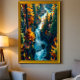 Bring the magic of autumn into your everyday space with this breathtaking canyon waterfall artwork. Rich fall foliage in glowing shades of gold, amber, and crimson flows gracefully around a serene turquoise river, creating a sense of calm, depth, and natural wonder.